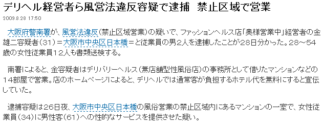 デリヘル経営者ら風営法違反容疑で逮捕 禁止区域で営業 2009.8.28 17:50