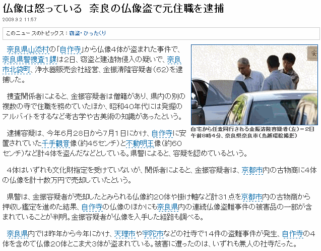 仏像は怒っている 奈良の仏像盗で元住職を逮捕 2009.9.2 11:57