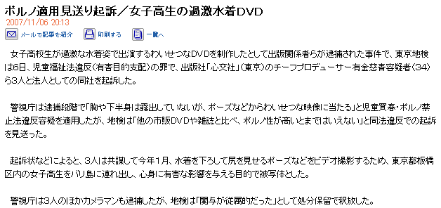 ポルノ適用見送り起訴/女子高生の過激水着DVD 2007/11/06 20:13