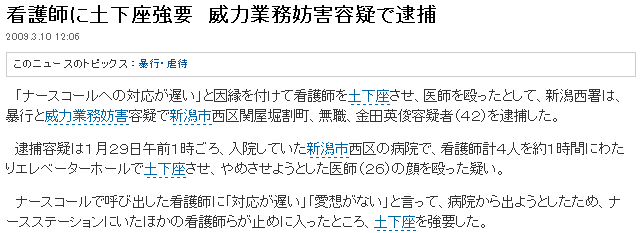 看護師に土下座強要 威力業務妨害容疑で逮捕 2009.3.10 12:06